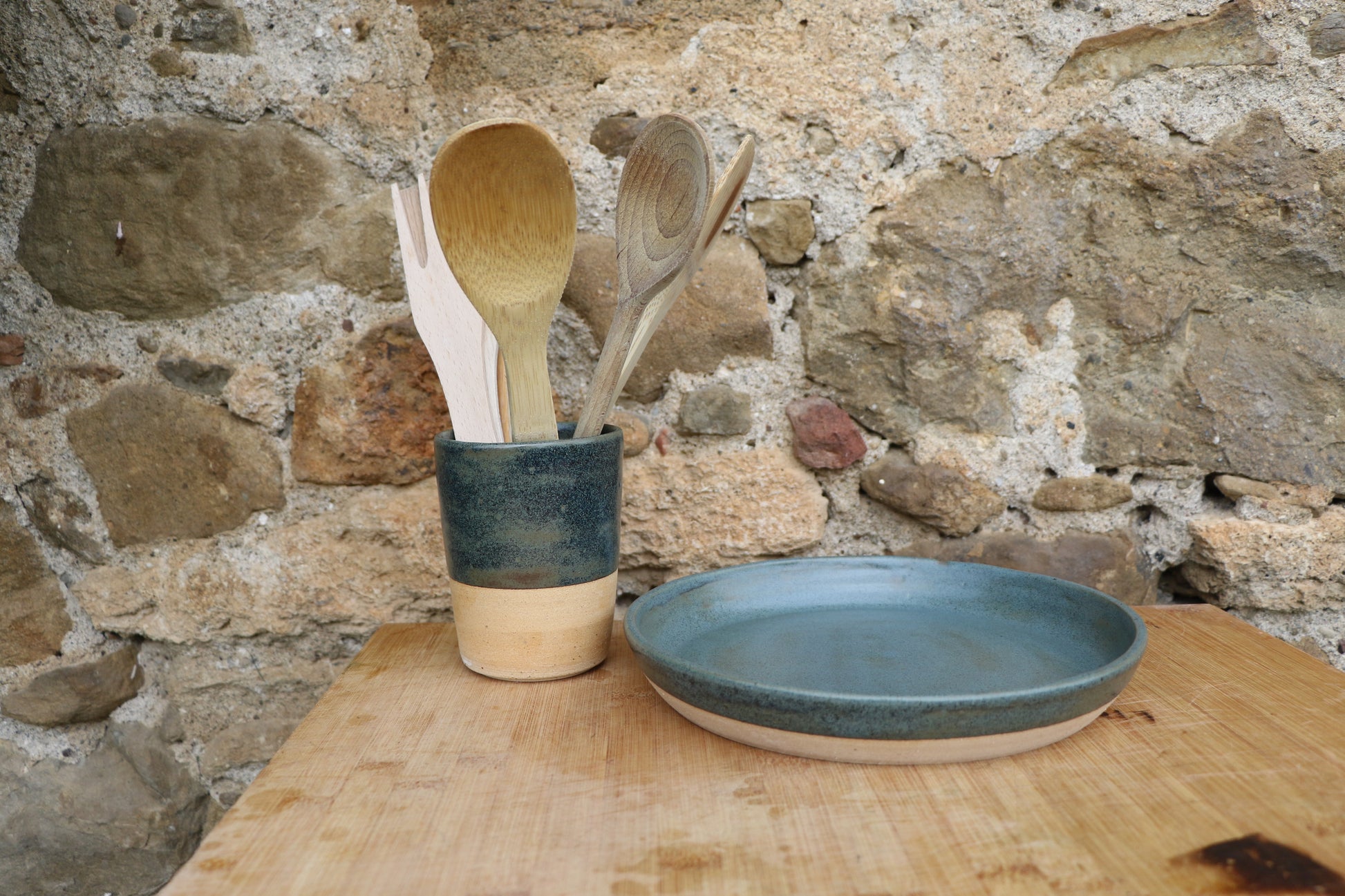 Handmade serving dish, in a deep blue glaze